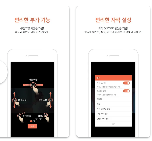 - 자막/코덱 지원: 모바일 앱 버전에서는 자막 검색 및 자막 싱크 조정 기능이 긍정적으로 평가됩니다.