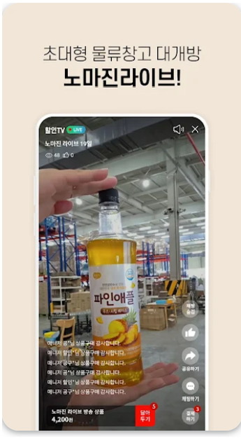 • 할인TV 라이브 방송으로 실시간 쇼핑 가능