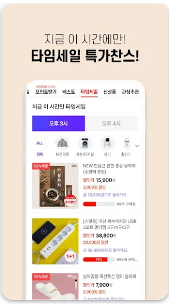 • 타임세일 시간대를 활용하면 인기 상품을 더욱 저렴하게 구매할 수 있습니다.