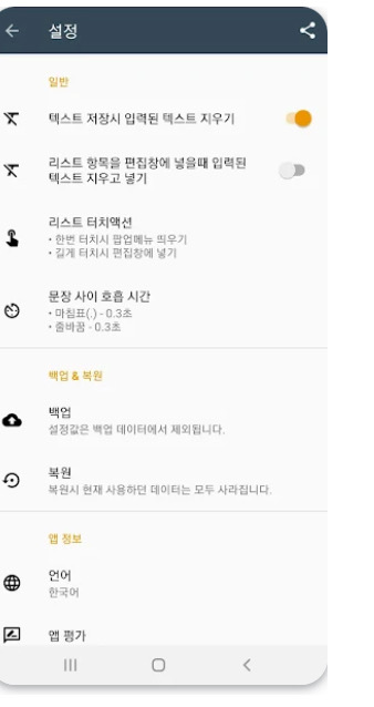 • 텍스트 읽기: 사용자가 입력한 텍스트를 안드로이드 시스템 음성으로 읽어줍니다. 글을 소리로 확인하며 문장 흐름을 쉽게 파악할 수 있습니다.