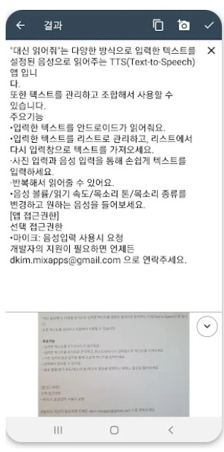 “사진 입력 기능 덕분에 손으로 타이핑하지 않고도 문서를 바로 읽어주어 편리했습니다.”