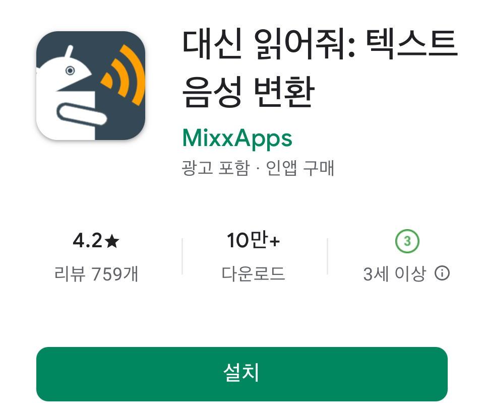 ‘대신 읽어줘’ 앱은 구글 플레이 스토어에서 설치할 수 있습니다. 설치 방법은 다음과 같습니다.