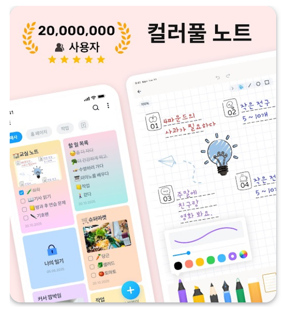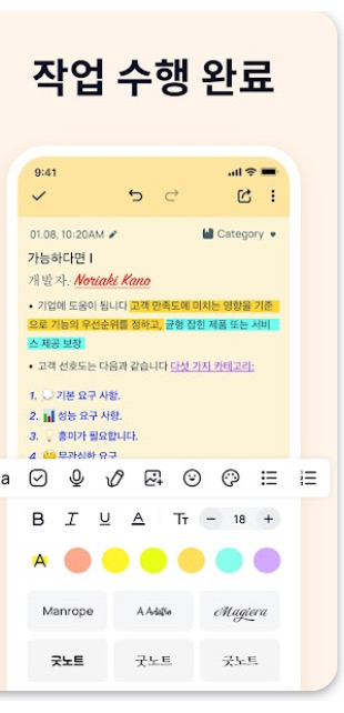 • 사용자가 원하는 색상으로 노트를 꾸밀 수 있어 시각적으로도 정리가 잘 됩니다.