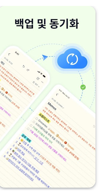 • 저장된 노트는 PDF로 내보낼 수 있고, 클라우드 동기화를 통해 다른 기기에서도 동일한 메모를 열람할 수 있습니다.