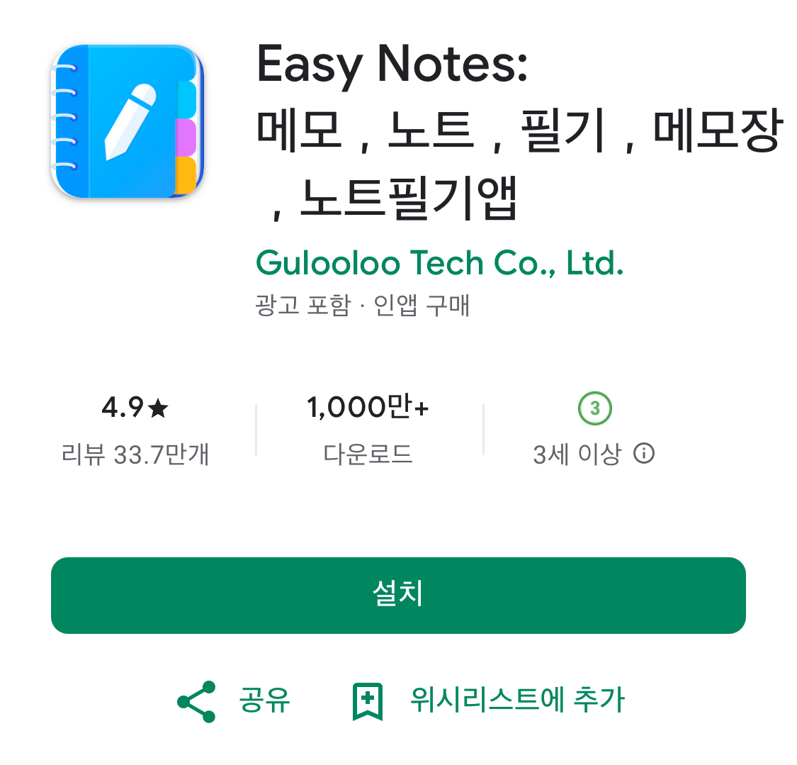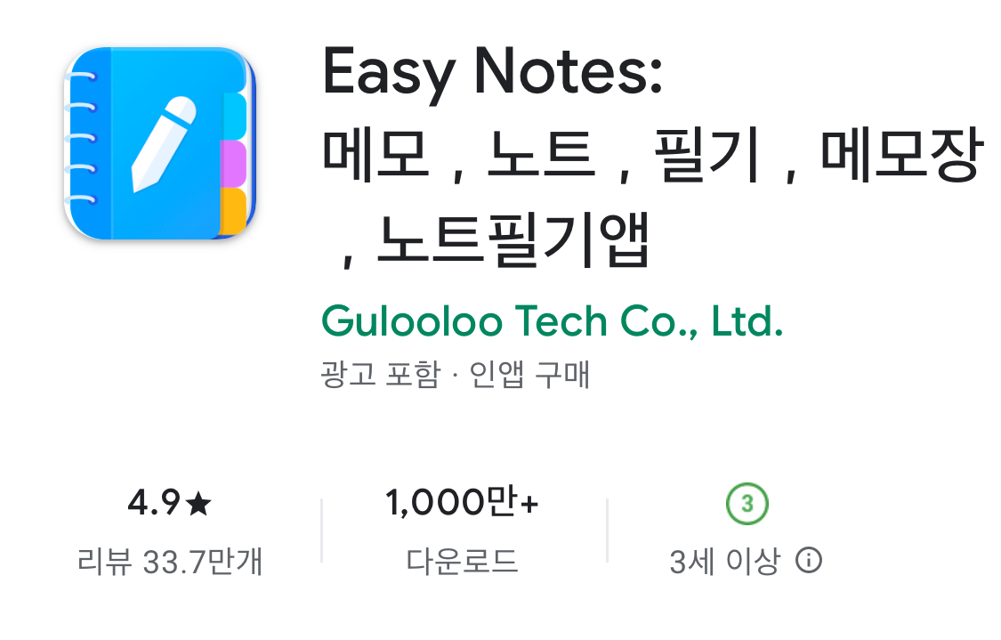 3. 노트 필기 앱, Easy Notes 메모앱 다운로드 및 설치 방법