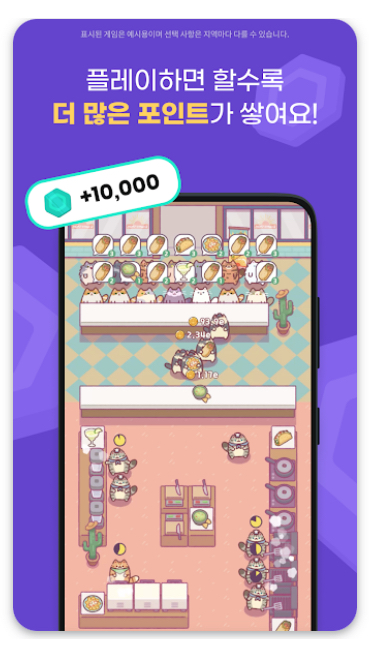 • 추천 게임 목록 제공: 사용자 맞춤형 게임을 추천해 주며, 설치 및 플레이 시 포인트 적립이 가능합니다.