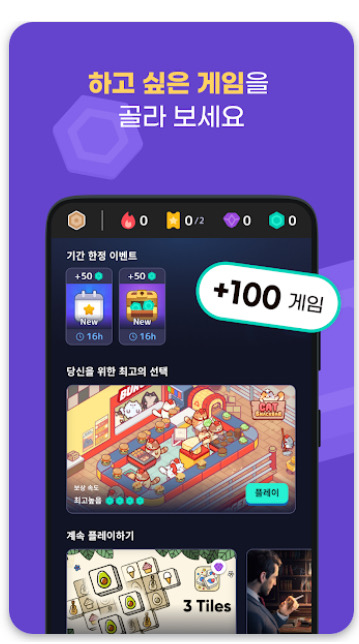 • 다양한 장르의 게임: 퍼즐, 전략, RPG, 액션 등 다양한 장르의 게임이 추천되며, 주기적으로 새로운 게임이 업데이트됩니다.