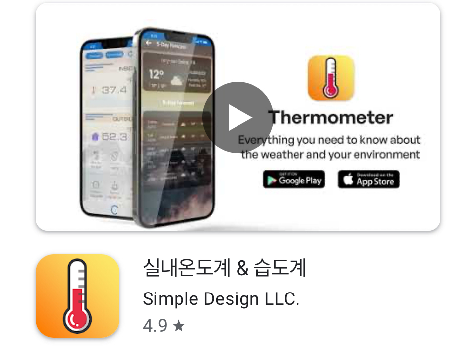• 안드로이드 사용자는 구글 플레이스토어에서 ‘Real Thermometer: Temperature’ 또는 ‘실내온도계 & 습도계’로 검색 후 설치할 수 있습니다.