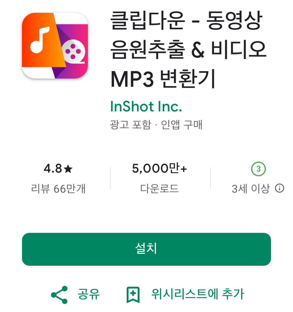 6. 유튜브 음원추출 어플, 클립다운 장단점