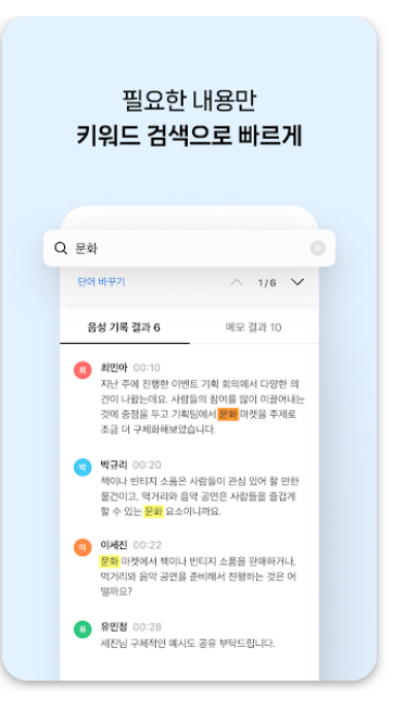 • 텍스트 검색 및 수정: 녹음 후 생성된 텍스트는 검색할 수 있으며, 단어나 문장을 손쉽게 수정할 수 있습니다.