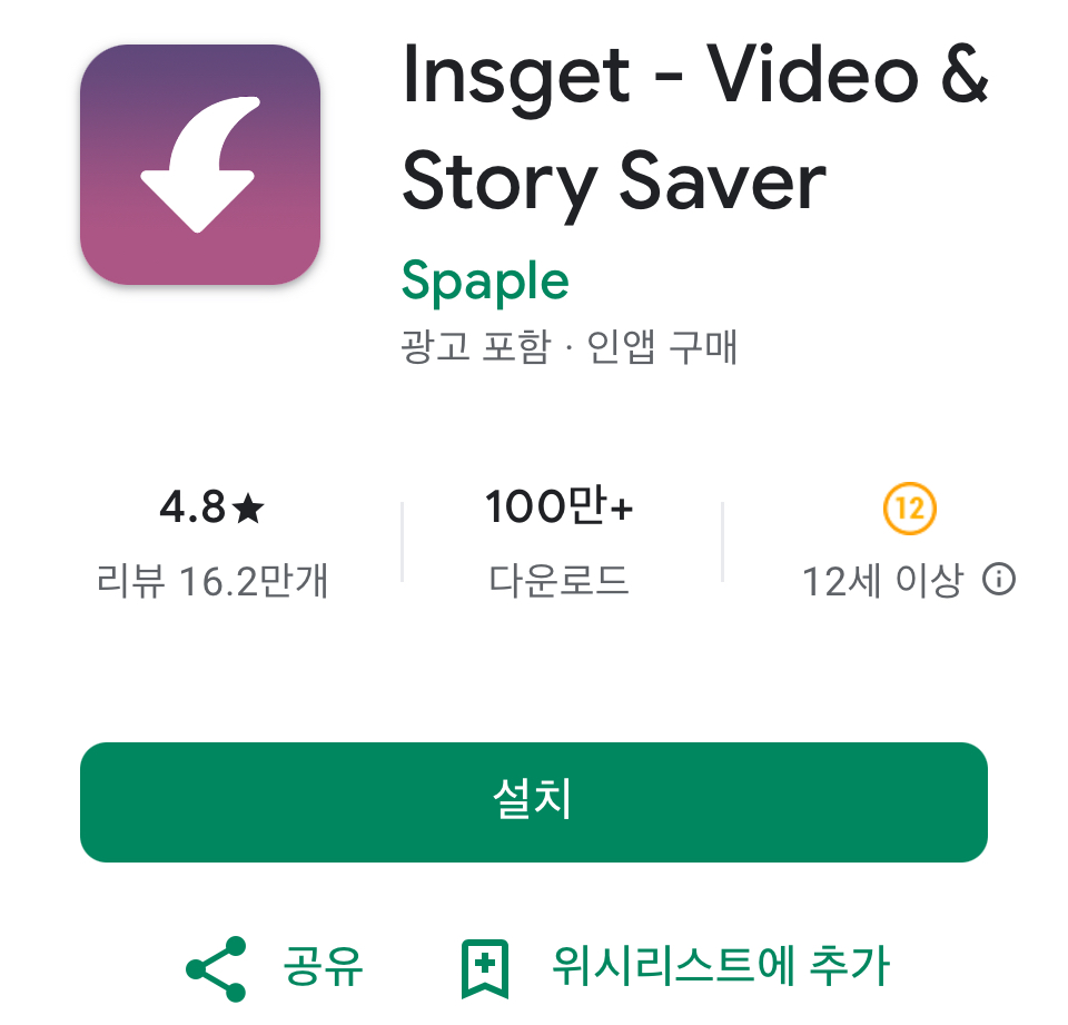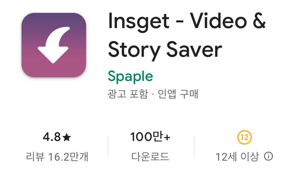 • 구글 플레이 스토어에서 “Insget - Video & Story Saver” 검색