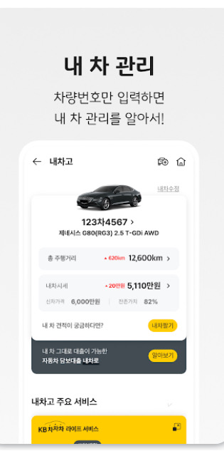 • 차량 관리: 내차고 등록을 통해 리콜 여부, 정비 이력, 주행거리, 사고 이력 등 차량 관련 모든 정보를 확인할 수 있습니다.