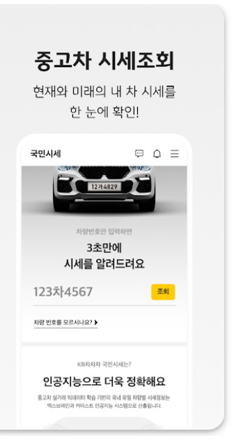 • 중고차 시세 조회: AI 국민시세를 제공해 연식, 주행거리 등 40여 가지 요소를 기반으로 정확한 시세를 확인할 수 있습니다.