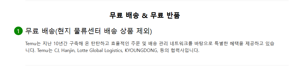이처럼 테무는 최소 주문 금액이 충족되면 무료 배송을 제공하며, 배송이 늦어지면 크레딧 보상을 지급하는 등 소비자 친화적인 정책을 운영하고 있습니다.