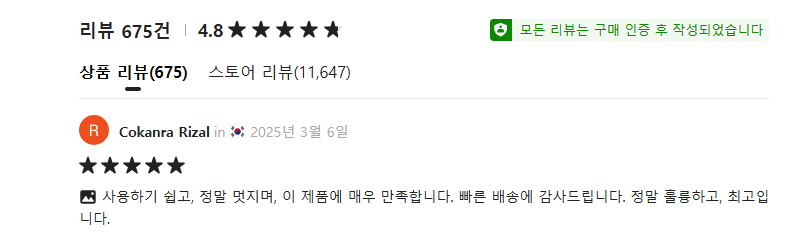 - 부정적인 후기: "상품 품질이 생각보다 좋지 않은 경우가 있어서, 꼭 리뷰를 확인해야 합니다. 또, 배송이 지연될 수도 있어요."