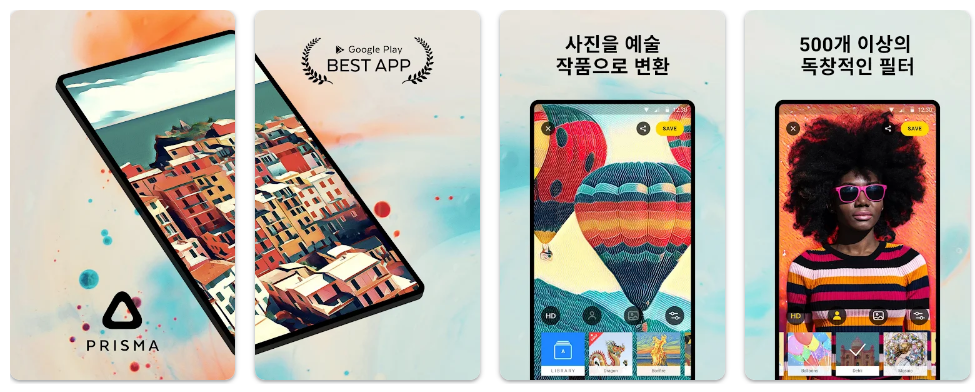 Prisma는 사진을 세계적인 아티스트들의 스타일로 변환해주는 앱입니다. 피카소, 뭉크 등 유명 작가들의 감성을 현대적 아트 필터로 재현하여 평범한 사진을 예술 작품으로 만들어 줍니다.